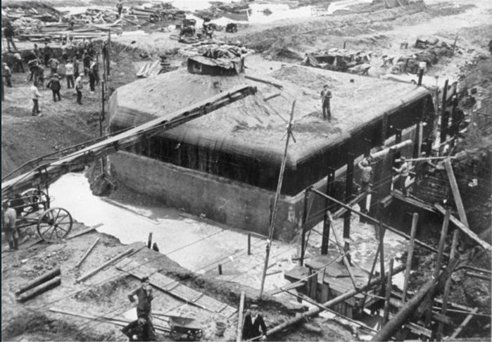 Bau eines 3-Schartenstandes an der Nordseite der Bahnlinie Dillingen-Nitaltdorf. Heeresfilmstelle Bildberichter: Mehls