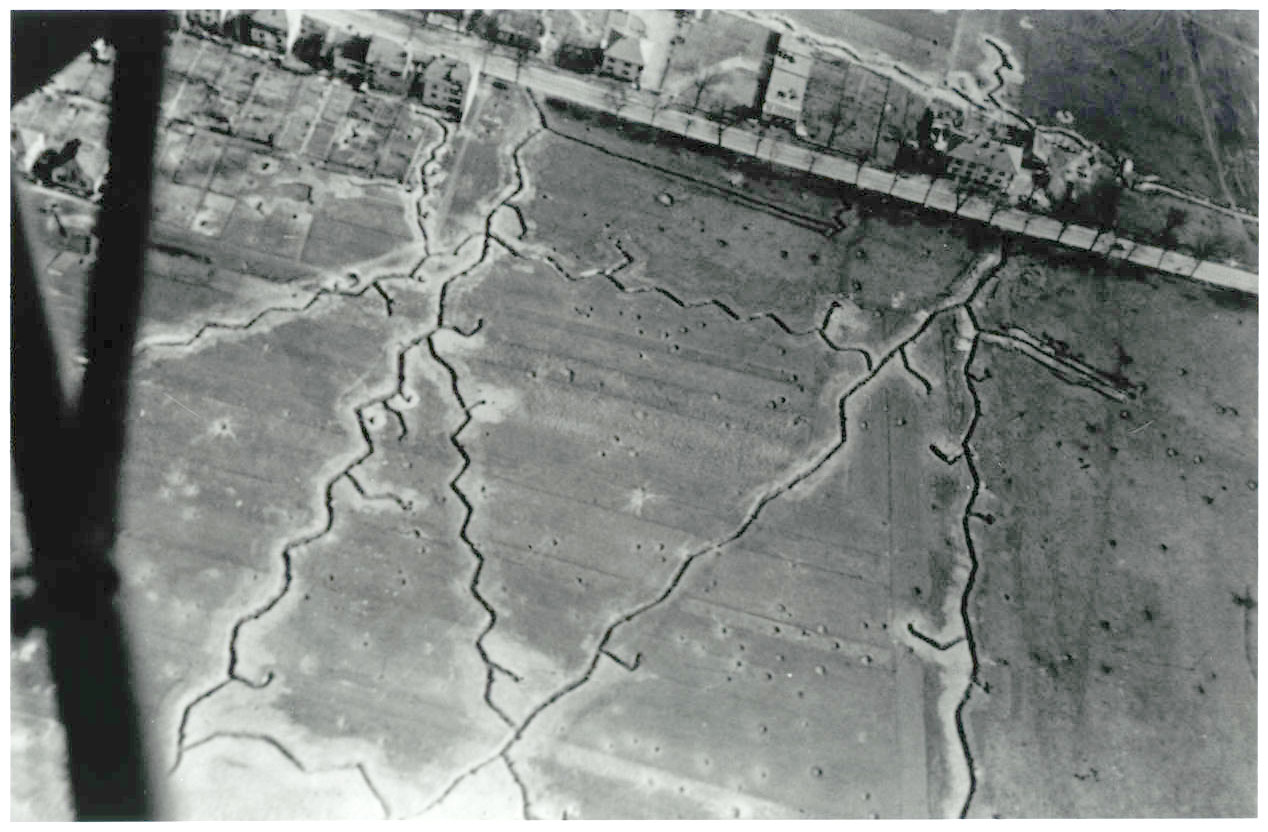 Comm trenches connecting German strong points. Trenches like these covered approach to Saarbrücken. 18 März 1945