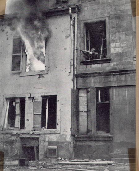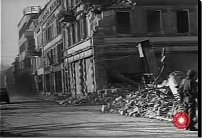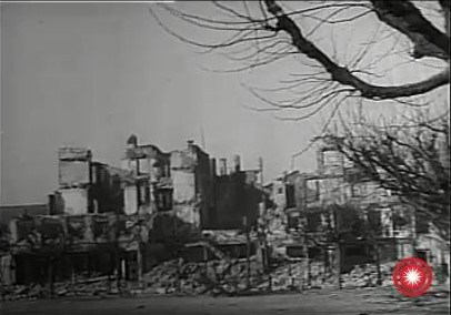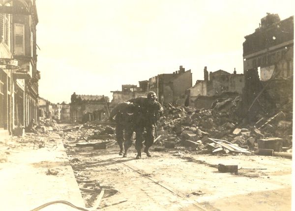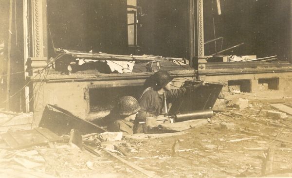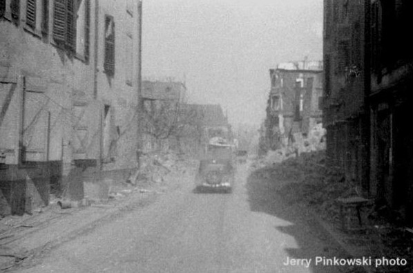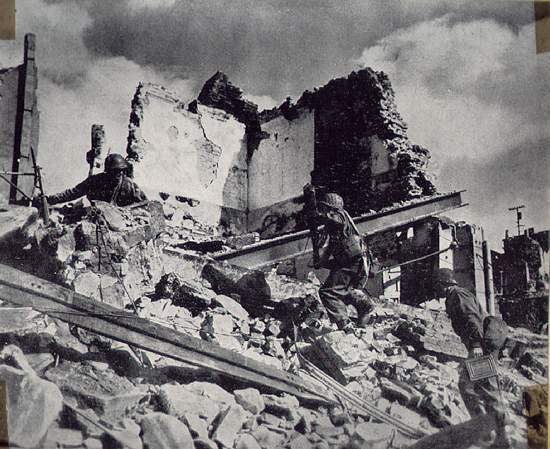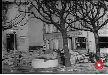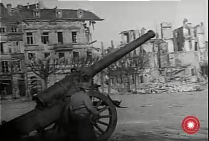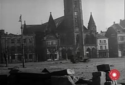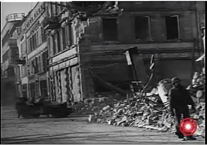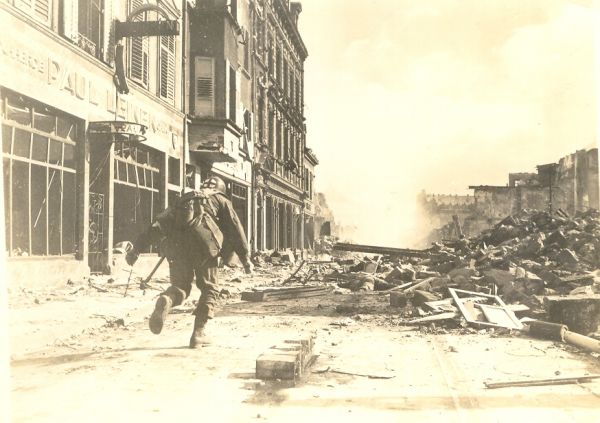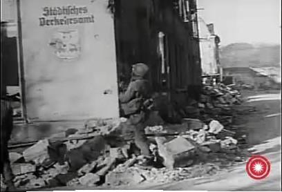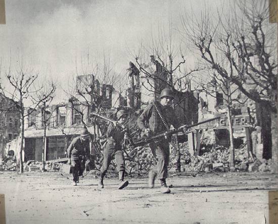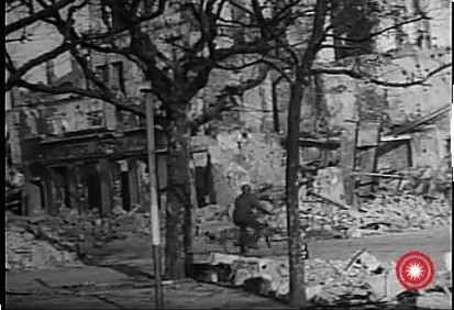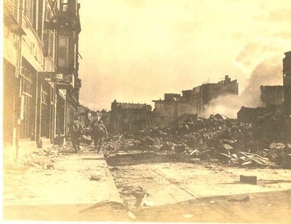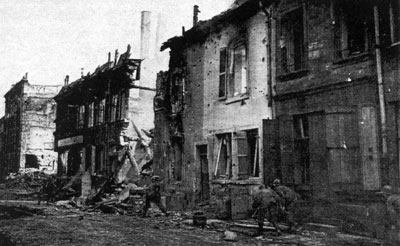 a wide shot of the street with troops moving up |